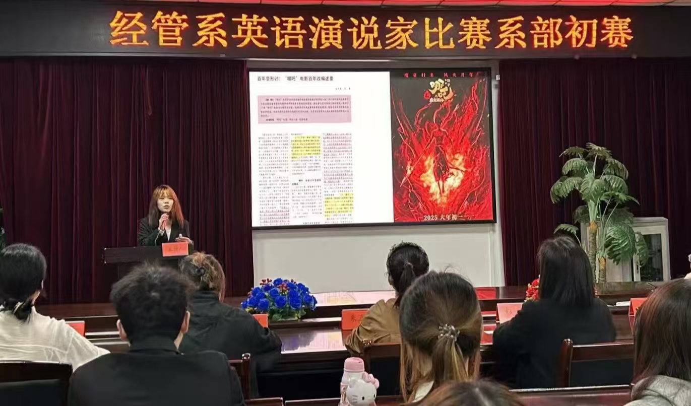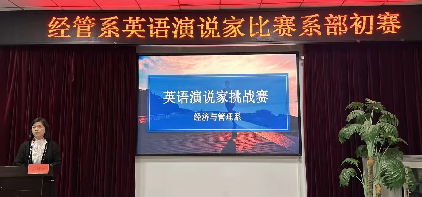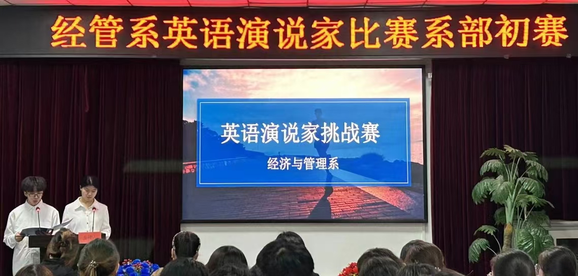 (通讯员宋怀意)为提升学生英语表达能力,展现经管学子风采,经济与管理系于4月24日12:30在第二会议室举办了“英语演说家”比赛初赛。经管系党总支书记彭婷、学工办主任朱立露、辅导员梁倩倩及办公室主任董宜艳和财管2201班赖迎学姐出席本次比赛并担任评委。财管2402班的欧阳妤南和唐琛同学担任此次比赛的主持人。
