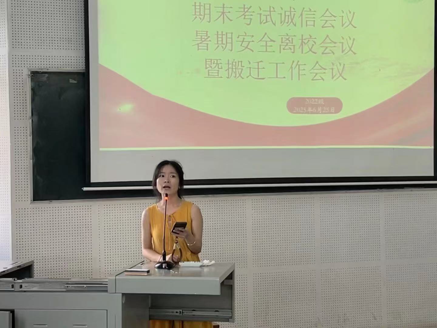 会上,学工办主任朱立露老师就搬迁时间节点、物品整理规范及公共设施保护等事项作出具体部署,要求同学们以班级为单位分批行动,避免拥挤混乱;贵重物品随身携带,易碎物品提前打包标注,减少搬运损耗。辅导员梁倩倩老师则重点围绕搬迁期间的安全隐患展开教育,包括财物保管、人身安全及突发情况应急处理等内容,同时提醒同学间互帮互助,关注心理情绪波动,营造和谐搬迁氛围。